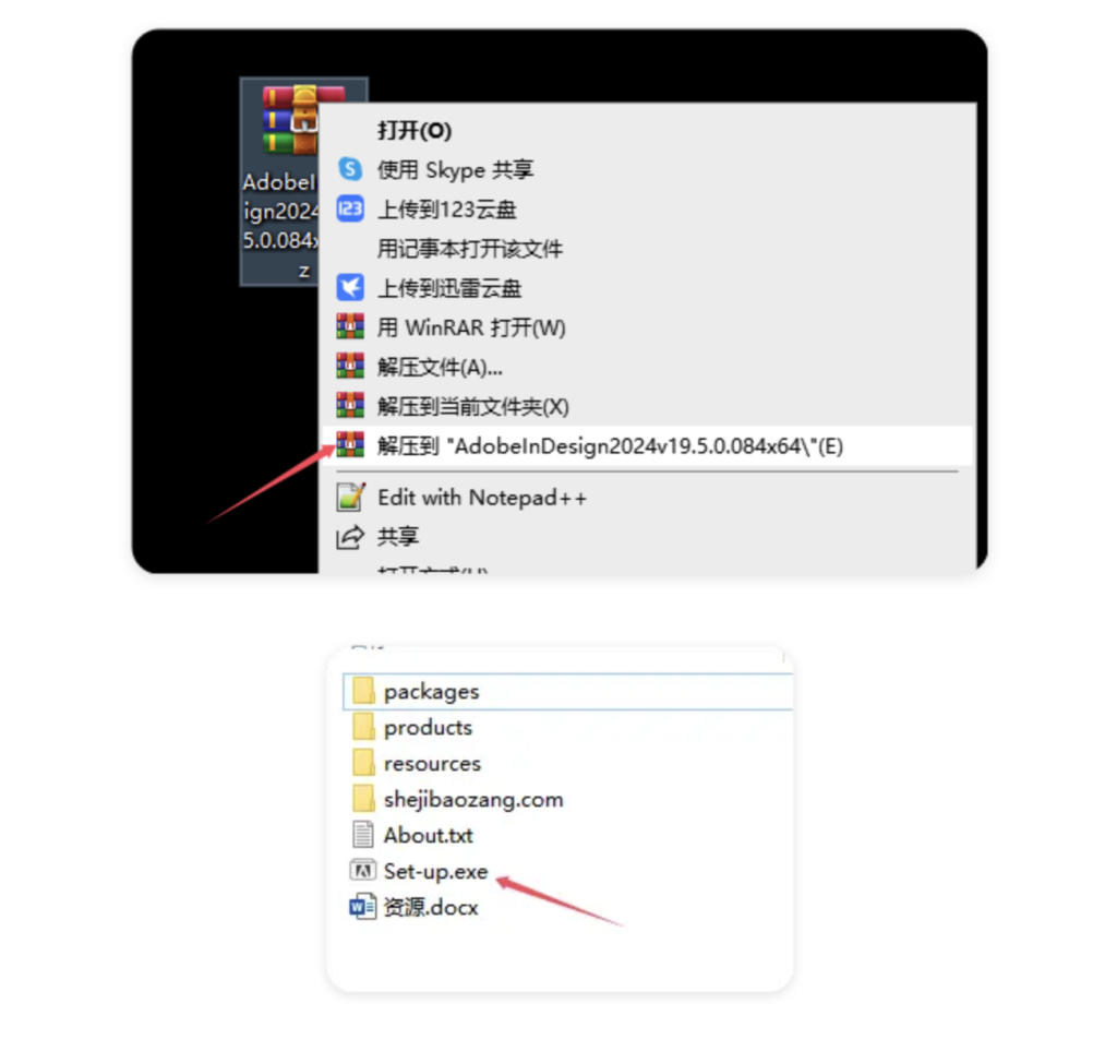 01-因为都是静默一键安装的解锁版本,毛毛就拿Id给大家举例安装,首先文末下载好压缩包,进行手动解压,选择Set-up.exe。